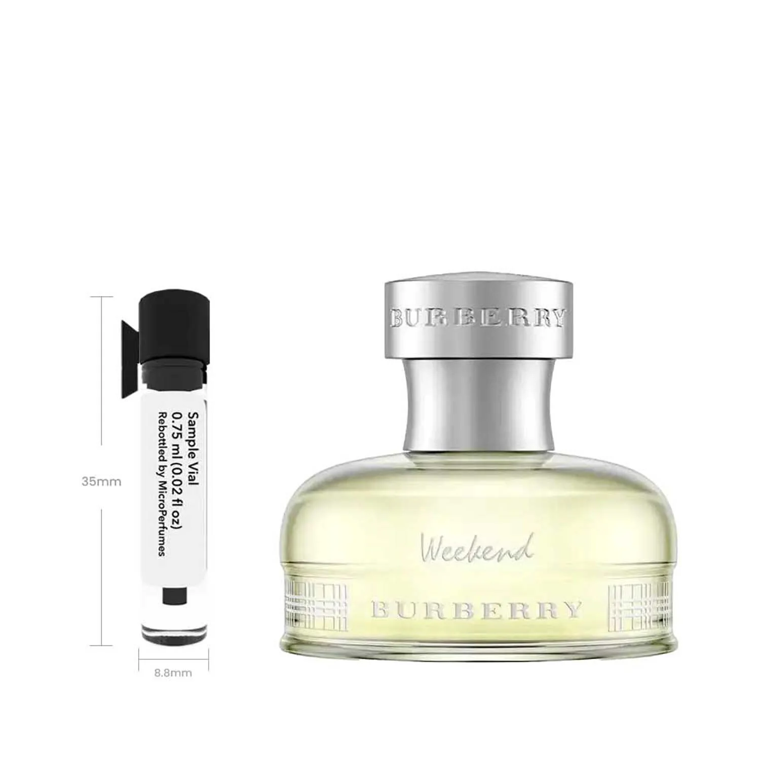 Burberry Weekend by Burberry is a bright, uplifting floral-fruity fragrance, exuding an aura of serene joy and effortless charm. It is perfectly suited for casual daytime excursions, weekend getaways, and the vibrant warmth of spring and summer. Independently rebottled by MicroPerfumes, this 0.75 ml sample vial provides enough fragrance for several wears, making it a low-risk way to explore a new scent without commitment.